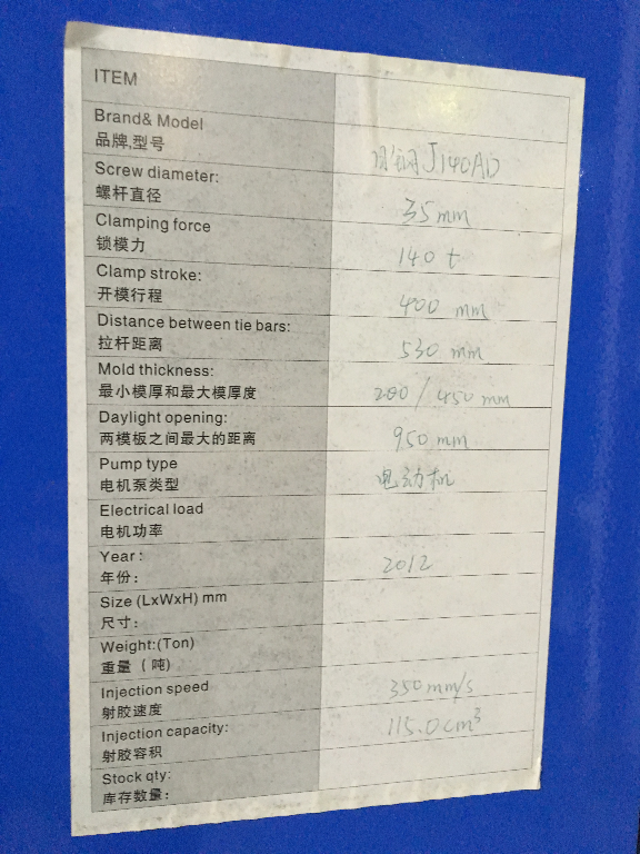 日钢 卧式注塑机 J140AD-110H